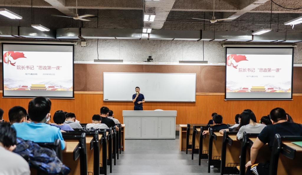 涵养爱国荣校情怀,开启人生新的航程。9月22日上午,电子与通信学院在学思楼-阶梯三教室举行了2020级本科新生入学教育暨“思政第一课”。出席本次会议的有电子与通信学院管明祥院长、党总支刘小延书记、罗德安副院长、团委书记张翅老师以及2020级199名本科新生。会议由电子与通信学院辅导员向彩绫老师主持。