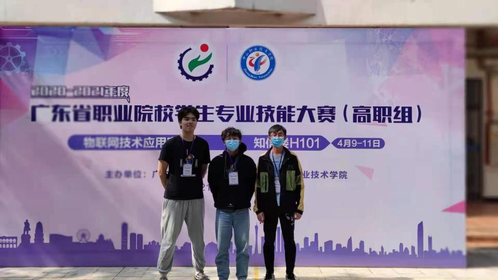 4月10日,2020-2021年度广东省职业院校学生专业技能大赛(物联网技术应用)在中山职业技术学院落下帷幕。比赛共吸引了广东省内高等职业院校的42支队伍,共126名选手参赛。我校信息与通信学院19级物联网专业庄锐豪、林宇桐、吴俊勇三名同学,在罗德安、易勋,赵志力三名教师指导下,顽强拼搏,荣获广东省赛一等奖。