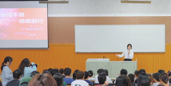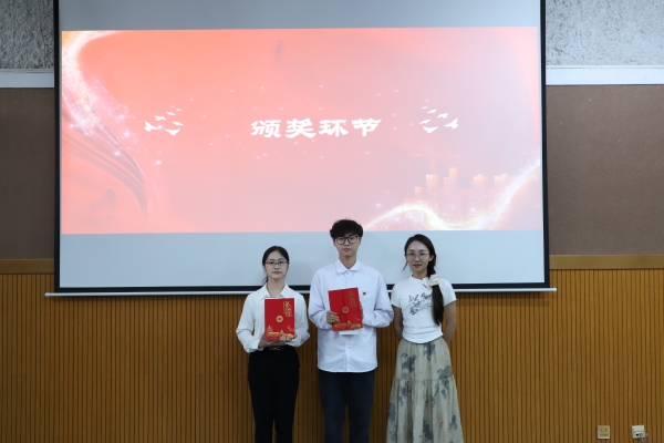学院教师为“信通年度人物”获得者颁发证书及奖品,勉励他们继续奋勇向上,做时代新人。