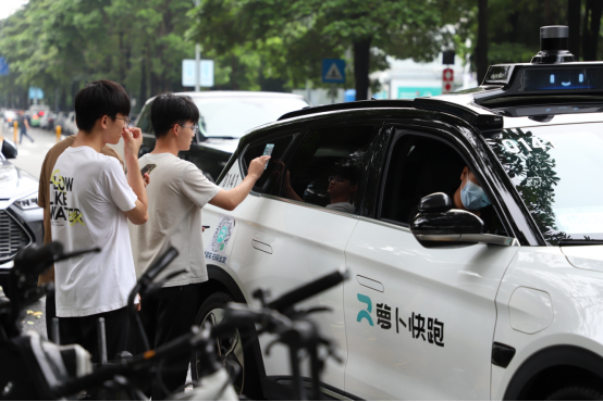 全体同学体验百度Apollo萝卜快跑自动驾驶出行服务,感受前沿科技走入现实生活的无限魅力。
