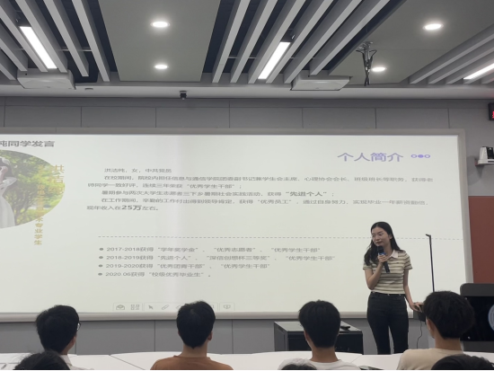 实现毕业一年薪资翻倍的17级优秀毕业生洪洁纯同学为大家分享职业目标与职业发展规划经验。