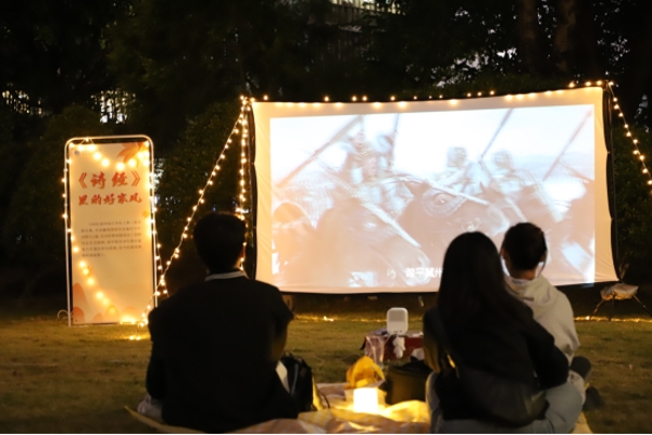 11月20日,信息与通信学院举办“诗礼传家”诗经特色文化活动之露天观影会,活动在知行楼3前草坪组织观看了《封神第一部:朝歌风云》。